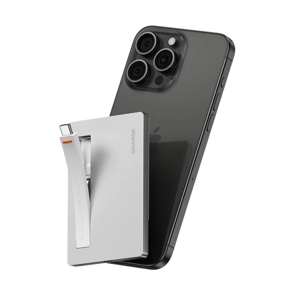 The SHARGE Disk Plus (SD002) is marketed as the world’s thinnest M.2 NVMe SSD enclosure. At just 0.24 inches (6mm) thick—roughly the thickness of three stacked coins—it is designed to be a “near-invisible” storage expansion for iPhones (15/16 Pro), MacBooks, and handheld gaming consoles like the Steam Deck.