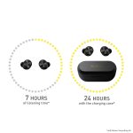 Up to 7 hours* playback with ANC on, 24 hours back-up with the case. Quick charge for 15 minutes will give you 70 minutes of playback.