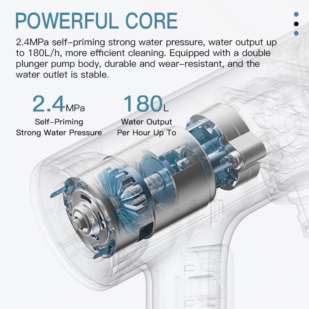 High-Pressure Cleaning for Impeccable Results:Achieving a spotless car has never been easier. The Xiaomi MijiaWireless Car Washing Machine delivers an impressive 2.4MPa self-priming water pressure, effectively removing dirt, grime, and other contaminants.In addition, the 180L/h water output ensures quick and thorough cleaning, saving you time and effort.